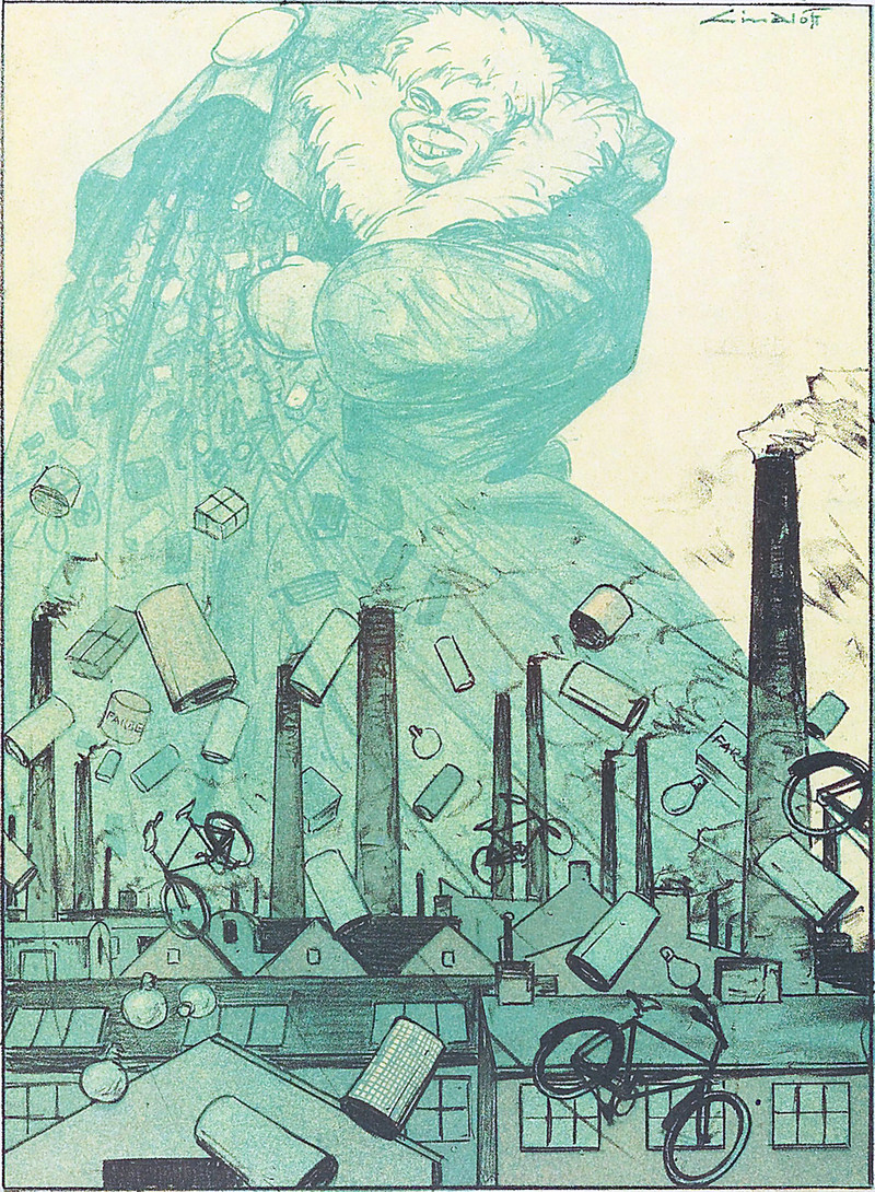 Here's a precursor to the Grinch giving back to the tiny folk of Whoville all the presents he stole.  From Kladderadatsch, 1933.
