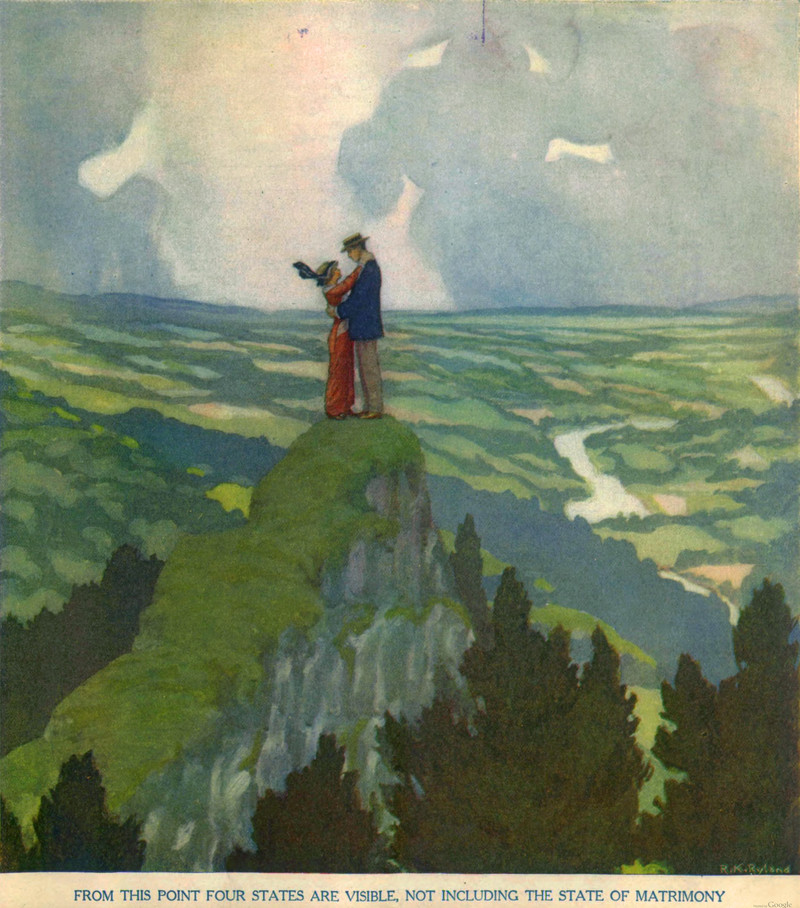 The point where four states are visible, not including the state of matrimony.  From The Judge, 1913.   See The Collected Lost Meanings of Wedlock.