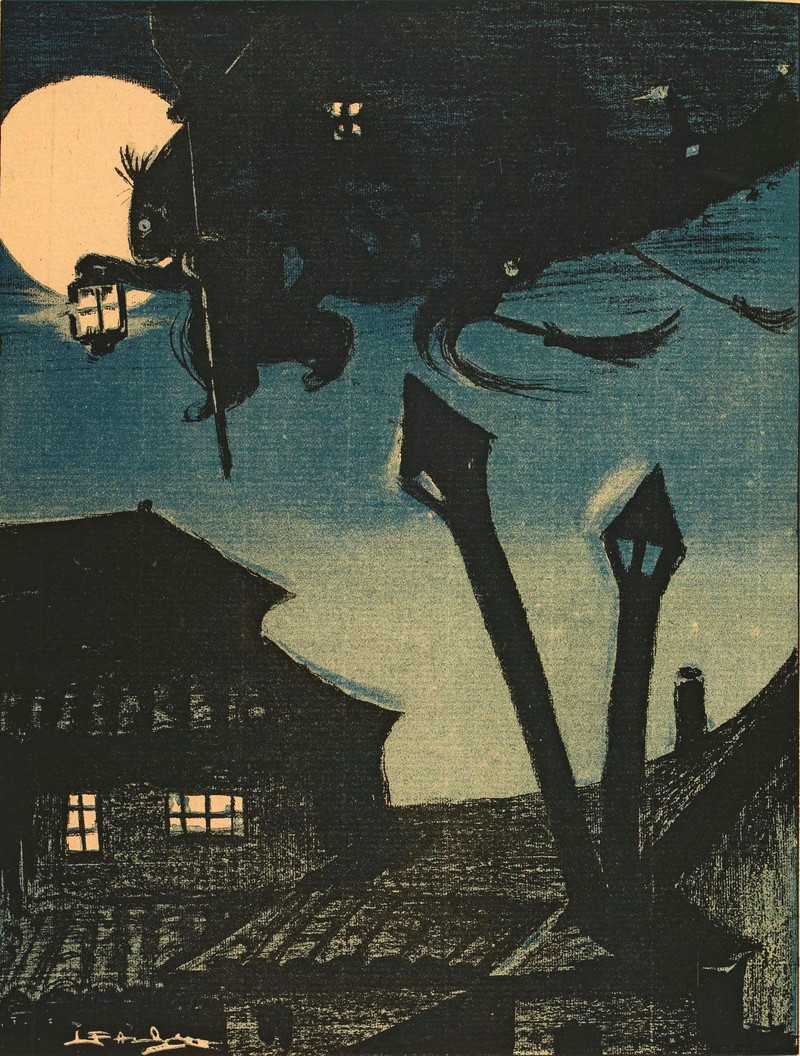 #vintage illustration #halloween #broomstick #full moon #october #walpurgisnacht #witches #hallowe'en
