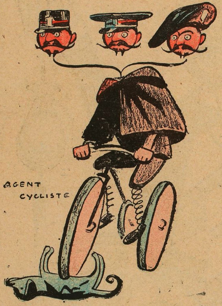 #vintage illustration #floating head #three heads #heads #lost his head #cyclist #interchangeable #3 heads