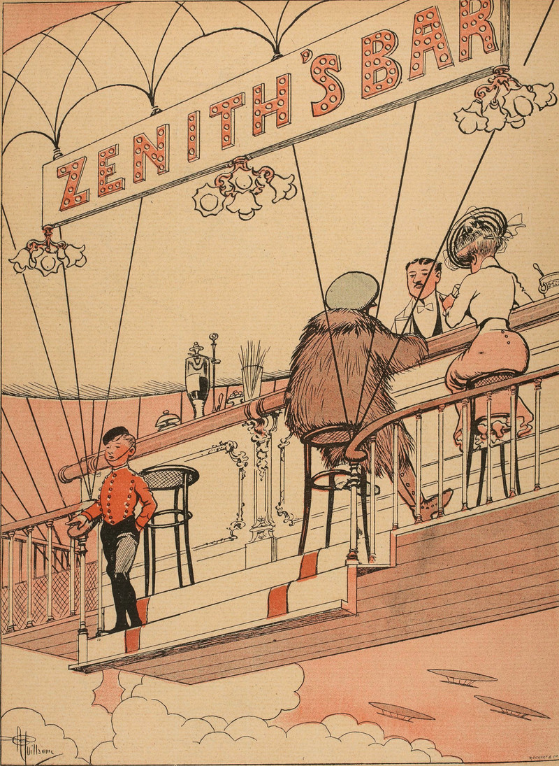 #vintage illustration #airship #flying bar #floating bar #bar in the sky #sky bar