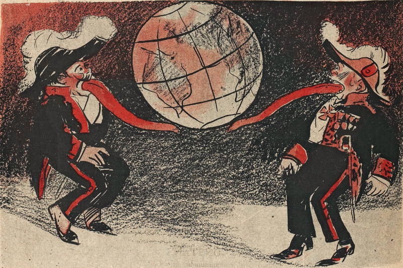 #vintage illustration #political cartoon #world #balancing act #long tongue