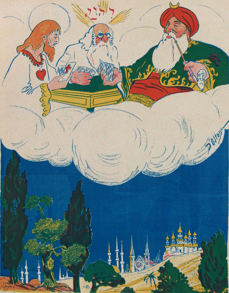 You've heard that God doesn't play dice.  But what about cards?  From L'Assiette au Beurre, 1908.