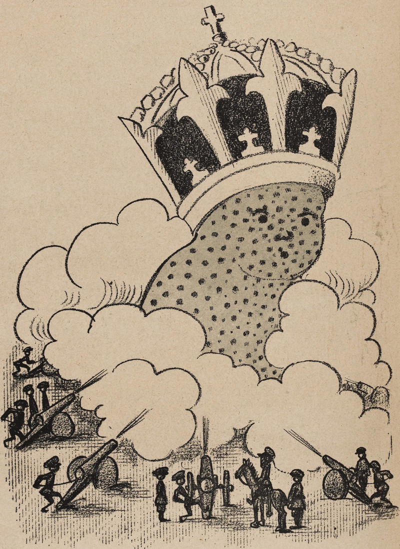 #vintage illustration #crown #giant baby #his majesty the baby #under fire #art