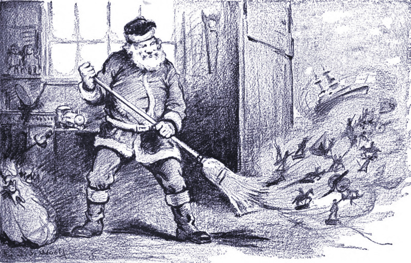 #vintage illustration #santa #sweeping #war toys