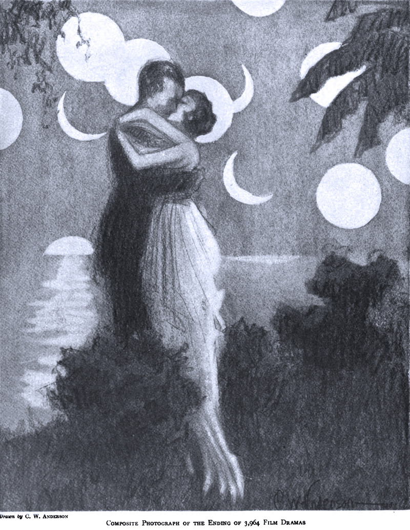 "Composite photograph of the ending of 3,964 film dramas."  From The Judge, 1921.