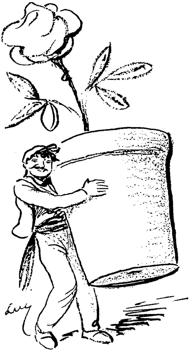 #vintage illustration #flower #tiny man #flower pot #giant flower