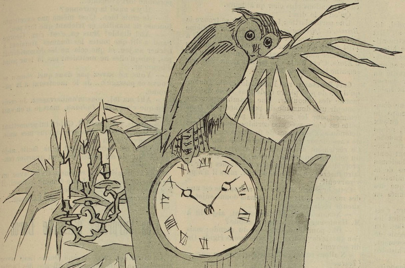 #vintage illustration #owl #clock #1880s