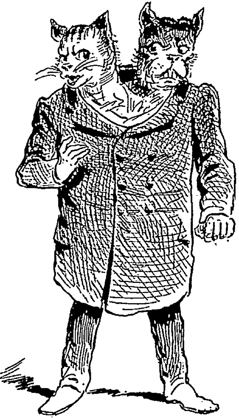 #vintage illustration #cat #hybrid #jekyll and hyde #two headed #1900s #cat man #cat and dog