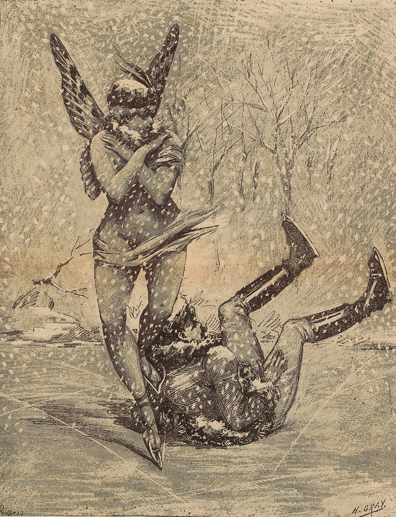 #vintage illustration #angel #ice #snow #winter #ice skating #slipping
