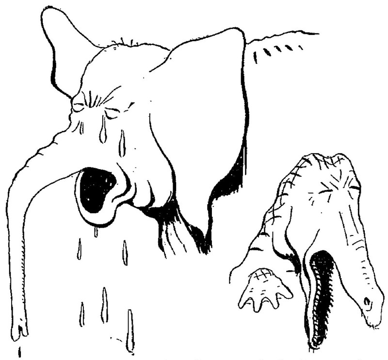 #vintage illustration #elephant #crying elephant #crying animal #crocodile tears #crying alligrator