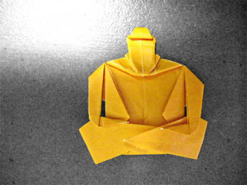 The Origami Buddha folded his legs into the lotus position.