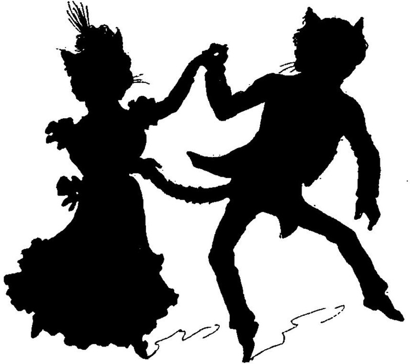 #vintage illustration #silhouette #anthropomorphism #cat #dancing #cats #dancing animal