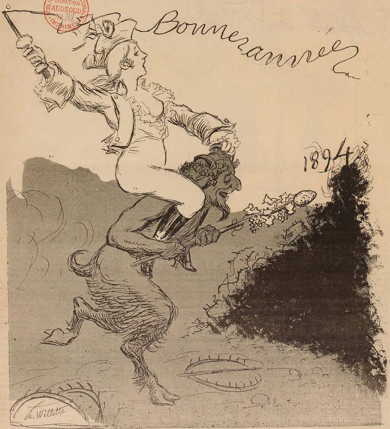 Reblog if a satyr ever carried you into the new year (with your top open).  From Le Courrier Français, 1894.