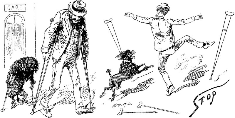 #vintage illustration #dog #people who look like their dogs #crutches #healing