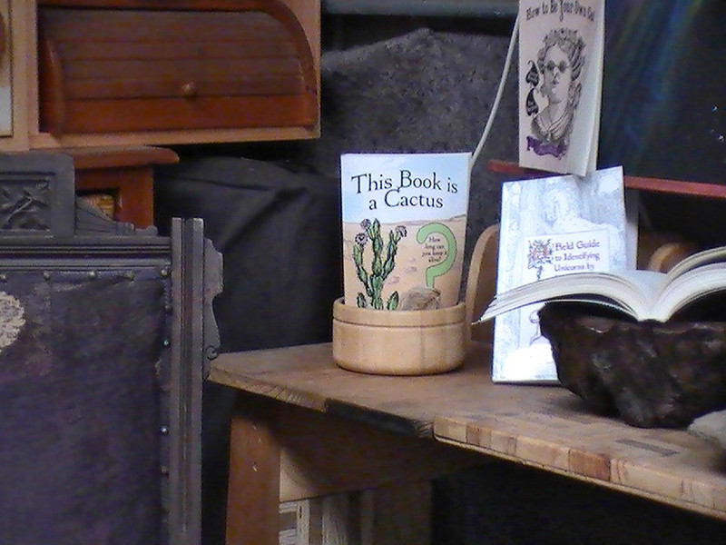 This Book is a Cactus was spotted growing in a potted rock garden, alongside A Field Guide to Identifying Unicorns by Sound and How to Be Your Own Cat.  Thanks, Adam, for sending the photo!
