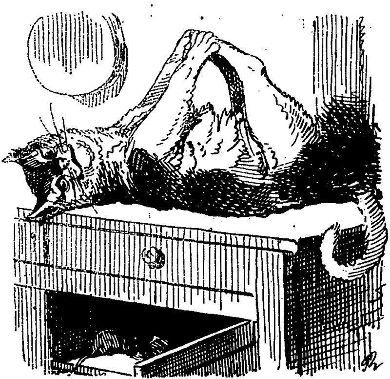 From Le Journal Amusant, 1876. If this looks like an attractive lifestyle, see How to Be Your Own Cat, about which Adam McFarland says: "If you have ever even seen a cat, this book will make you laugh. But when the laughter stops, that is when the true magic of this book takes over. Human nature disguised as feline behaviour. How to be Your Own Cat is a delightful way to learn some things about yourself without spending hundreds of dollars on a therapist who has no idea what they're talking about. I do love this delightful and clever little book."