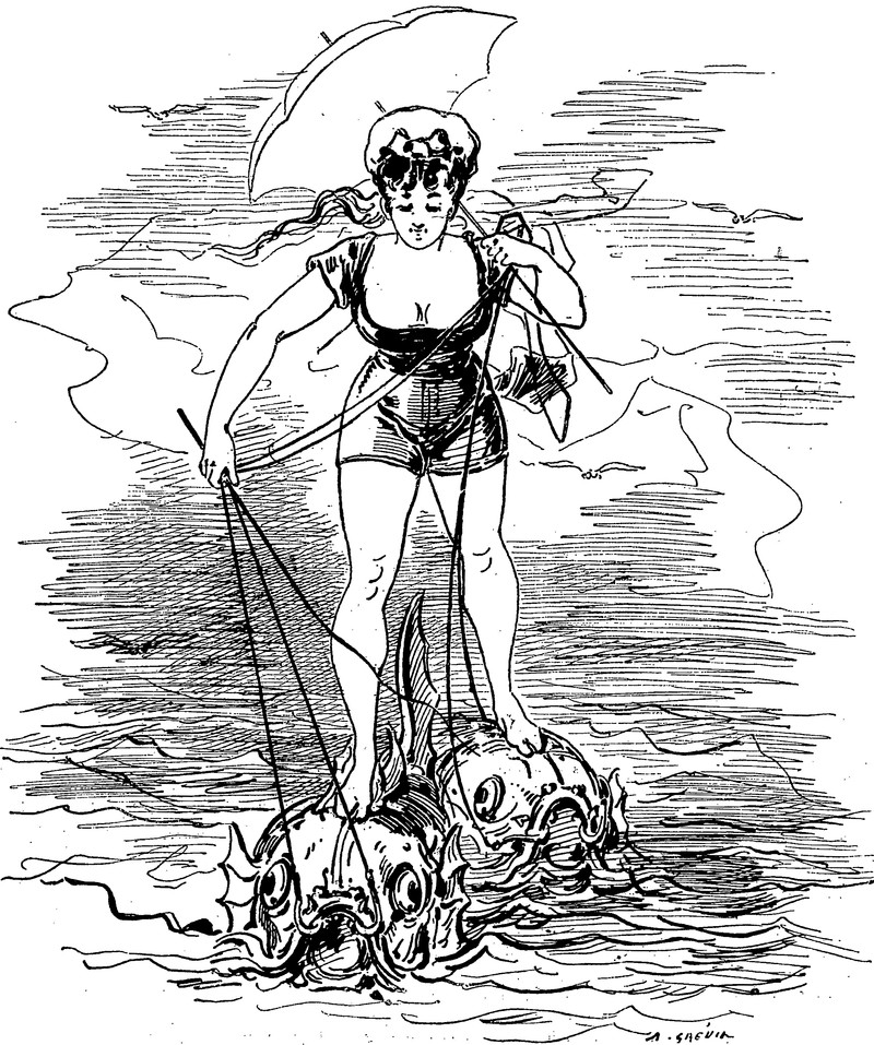 #vintage illustration #umbrella #fish #surfing