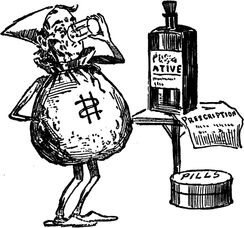 #vintage illustration #money #money bag #big pharma #pharmaceuticals #1900s