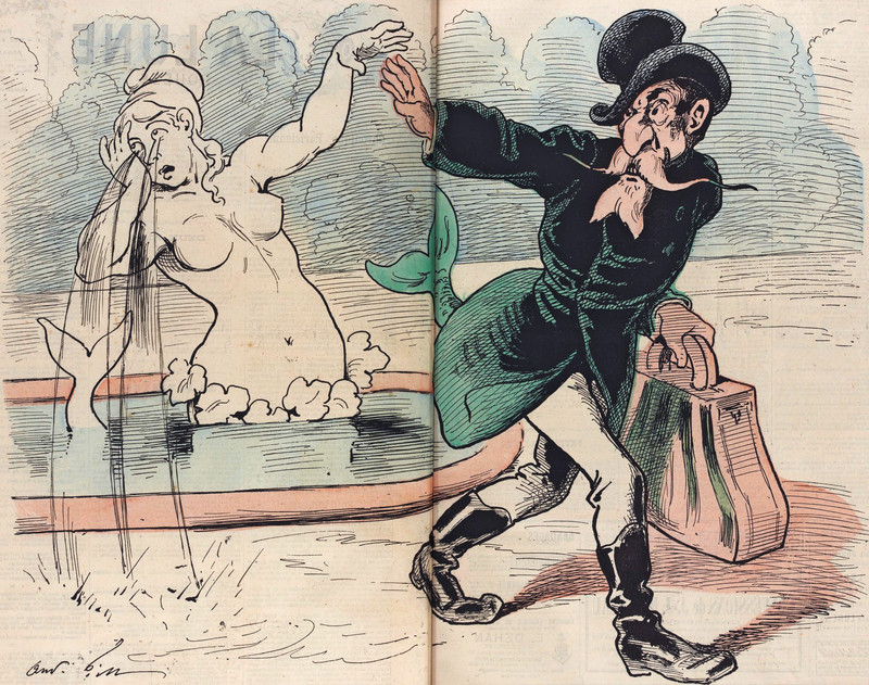 #vintage illustration #mermaid #merman #fountain #crying #tears #mermaid fountain