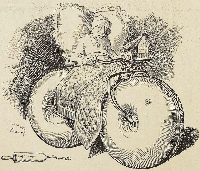 #vintage illustration #bed #recovery #convalescence #bed bicycle #sick bed