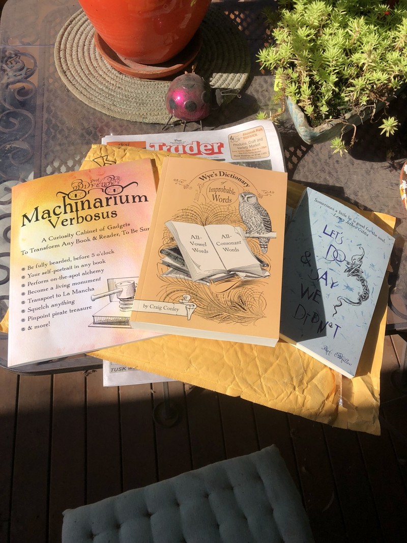 We previously mentioned a reader who used the Japanese "Ghost Leg" system to predict which of our books to buy.  His package arrived in the mail, and it turned out that the Ghost Leg predicted correctly!  As foretold, he received Machinarium Verbosus: A Curiosity Cabinet of Gadgets to Transform Any Book & Reader, To Be Sure as well as Webster's Dictionary of Improbable Words: All-Consonant and All-Vowel Words, and a bonus book: Let's Do and Say We Didn't.