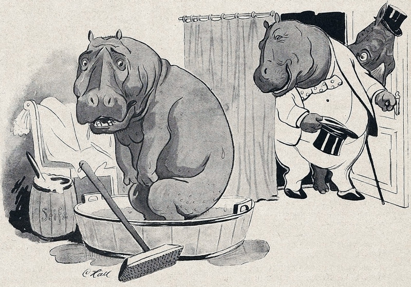 #vintage illustration #anthropomorphism #hippo