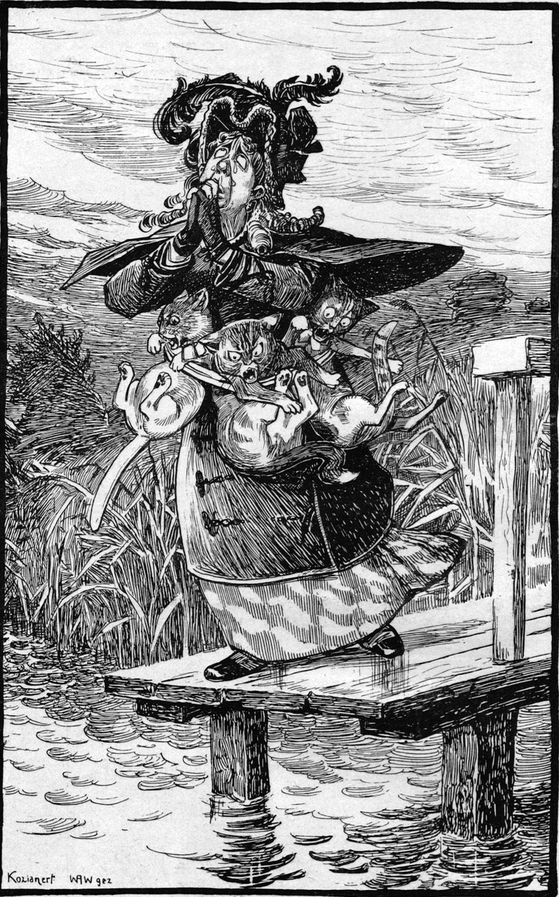 Cats for flotation.  From Lustige Blätter, 1900.