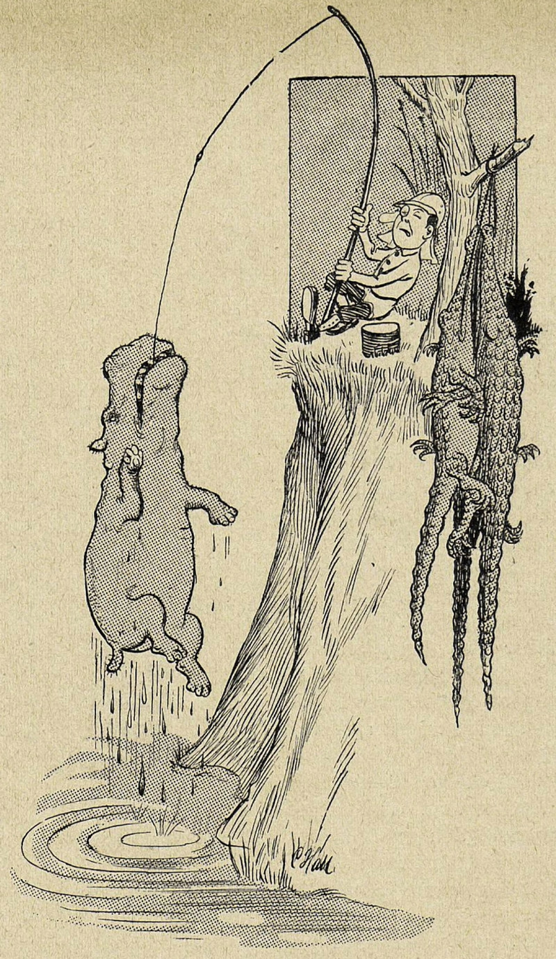 #vintage illustration #fishing #hippo #alligators