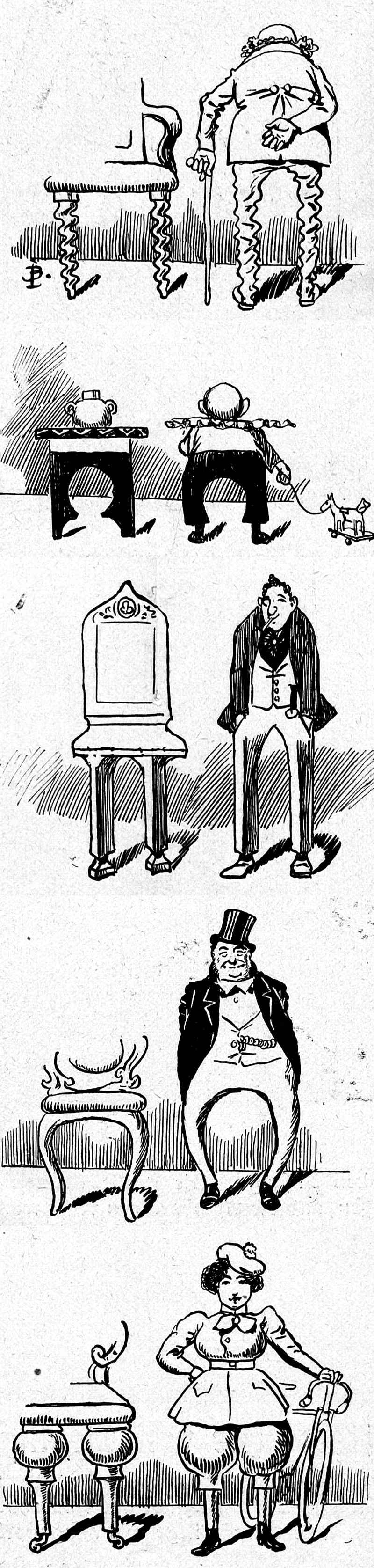 As Harry Hill would put it, "Isn't it weird how people end up looking like their chairs?"  From Lustige Blätter, 1900.