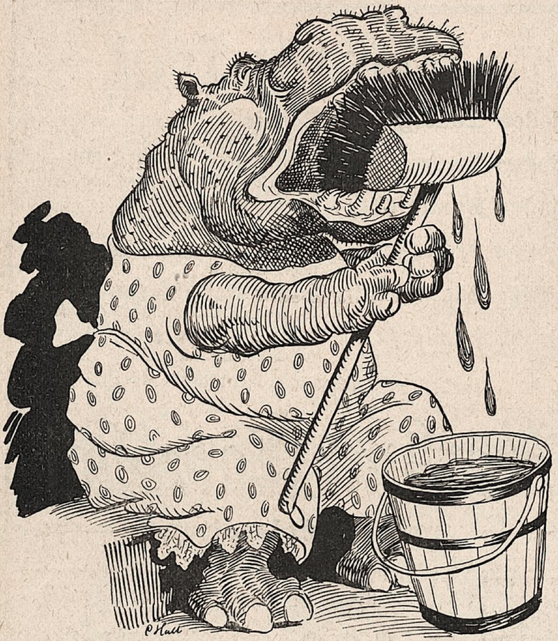 #vintage illustration #anthropomorphism #hippo #toothbrush