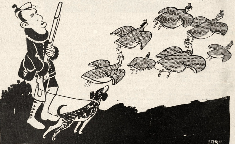 #vintage illustration #dog #harpy #hybrid #human headed #hunter #pet walking #bird woman