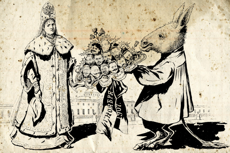 #vintage illustration #political cartoon #anthropomorphism #severed head #donkey