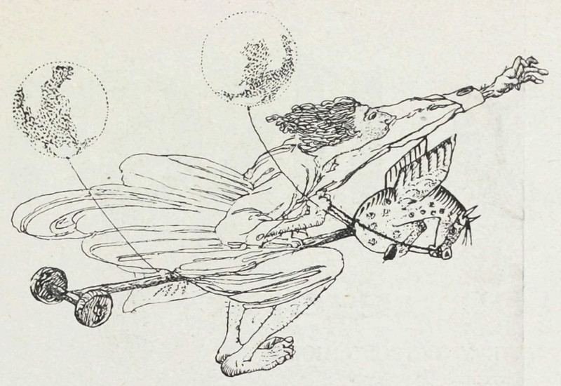 It's totally acceptable to use helium balloons when encouraging your Pegasus hobbyhorse to fly.  From Satirikon, 1908.