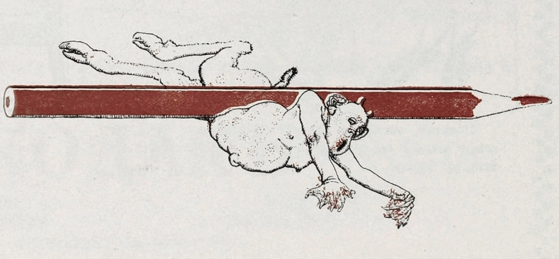 #vintage illustration #demon #devil #crushed #1900s #red pencil