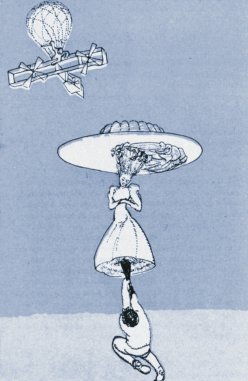 #vintage illustration #fashion #vintage fashion #big hat #hot air balloon #hat #parachute hat #sky diving