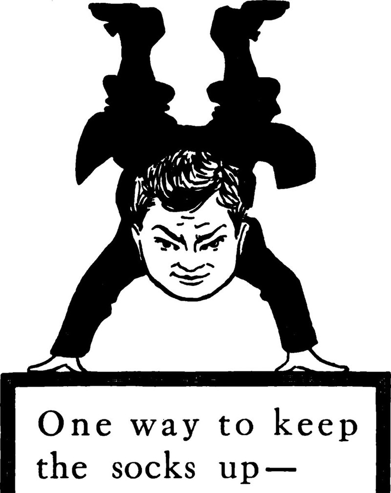 "One way to keep the socks up—"  From Saturday Evening Post (1913).