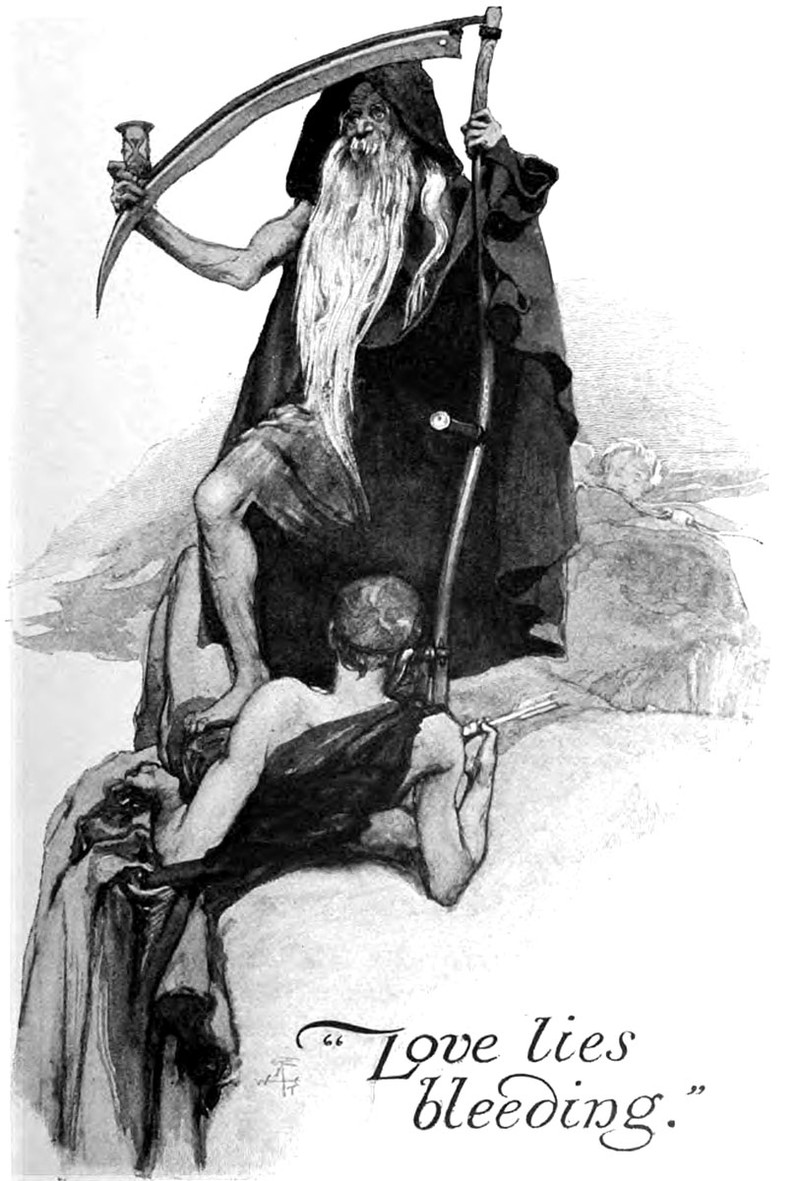 #vintage illustration #beard #father time #scythe #love lies bleeding
