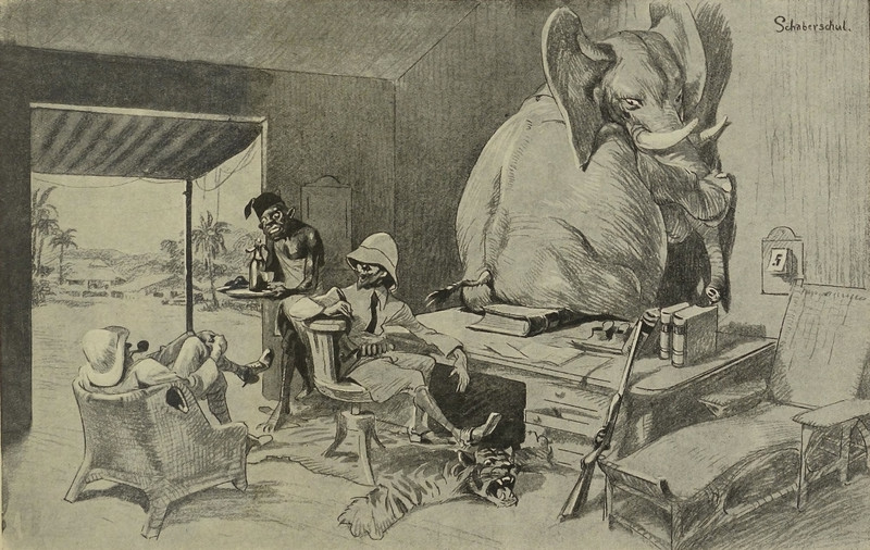 Sometimes one doesn't see the "elephant in the room" because it's over in the corner.  From Lustige Blätter, 1914.