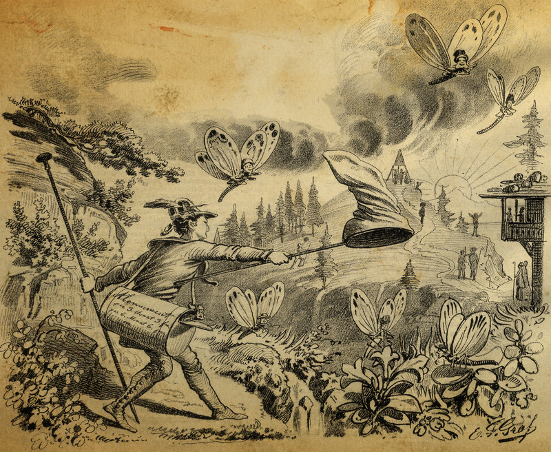 #vintage illustration #human headed #butterfly net #insect people #butterfly people