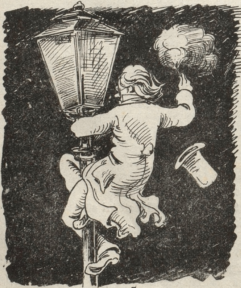 #vintage illustration #night #lamp post #lamplighter