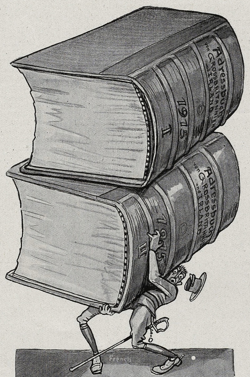 #vintage illustration #book #giant book #tiny man #crushed
