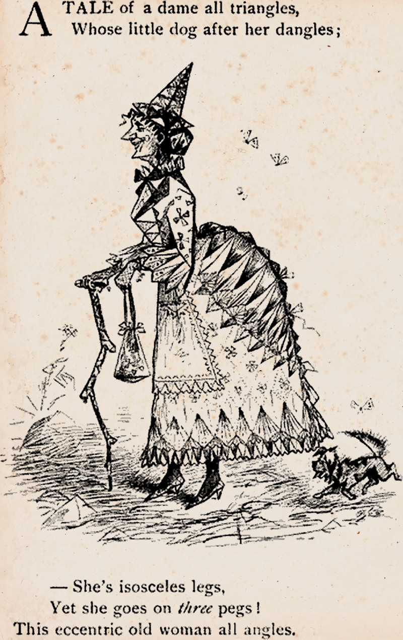 Isosceles legs.  From "Rhyme of the Three-Cornered Lady" by Isabella Brant Meredith, in Wide Awake, 1884.