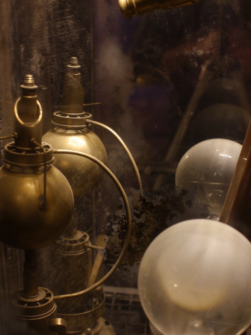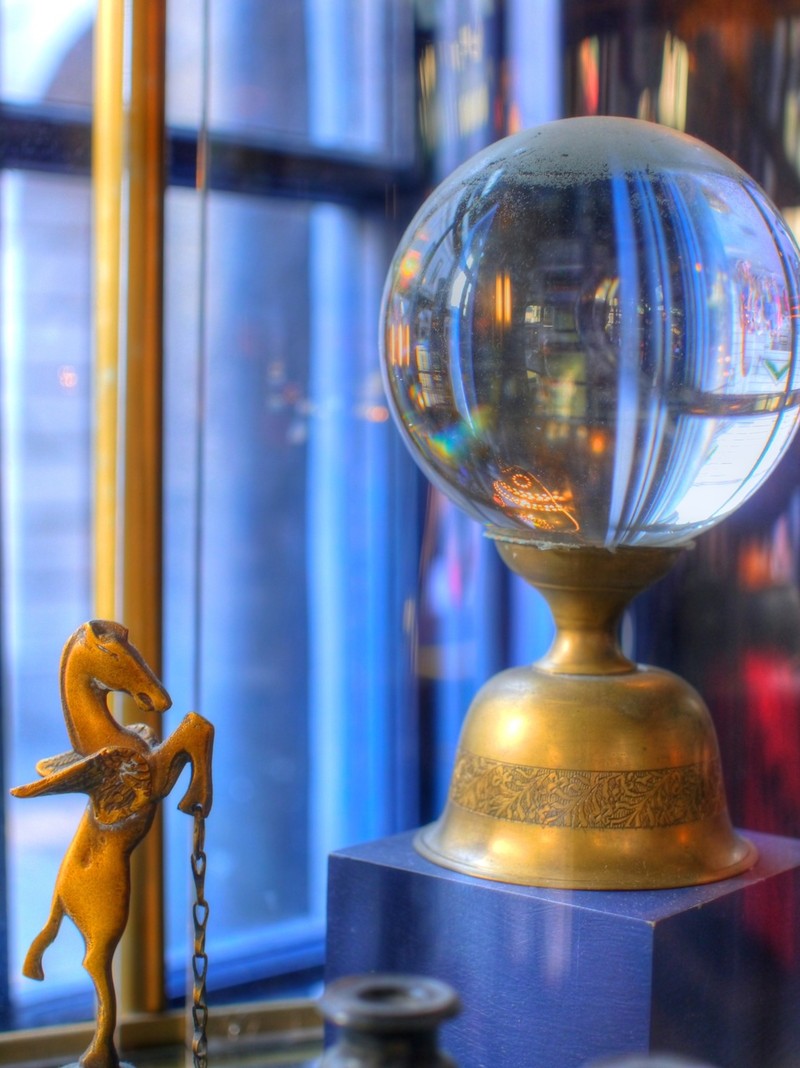 One of our greatest pleasures lies in capturing on film the mysteries of crystal balls. These eight examples are of favorite crystal balls within cabinets of curiosities, all located within ... well, many will recognize the location! (Anyone who doesn't know but would like to should drop us a line, and we'll gladly reveal all.) The first six of these photos were taken in near complete darkness, the balls themselves nearly undetectable by the naked eye. On occasion we take portraits of crystal balls in the collections of seers and aficianados (or "buffs," as they might better be called).