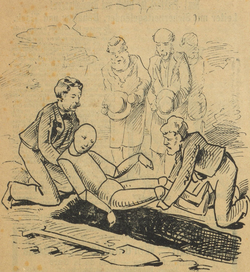 #vintage illustration #cemetery #open grave #burial #dummy #mannequin