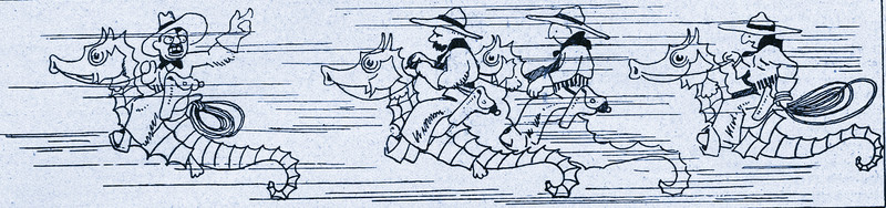 #vintage illustration #seahorse #tiny men