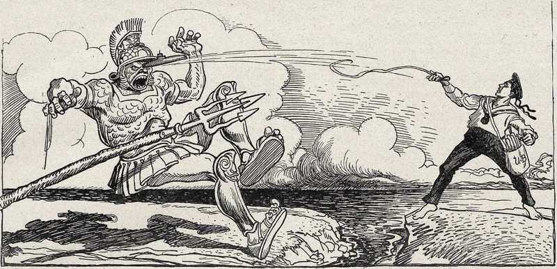 #vintage illustration #giant #submarine #goliath #slingshot