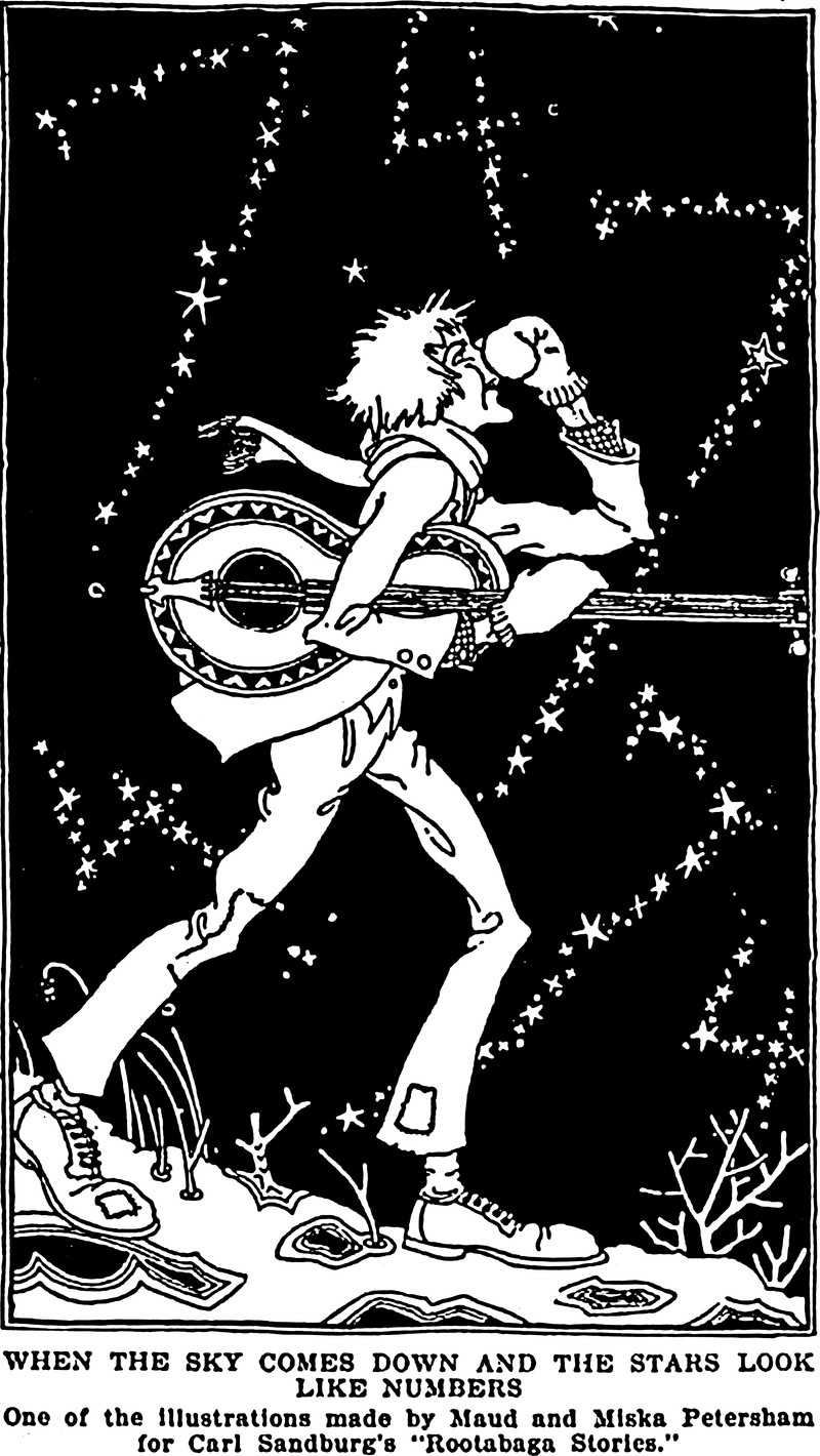 "When the sky comes down and the stars look like numbers."  An illustration by Maud and Miska Petersham for Carl Sandburg's Rootabaga Stories.  From Current Opinion, 1922.