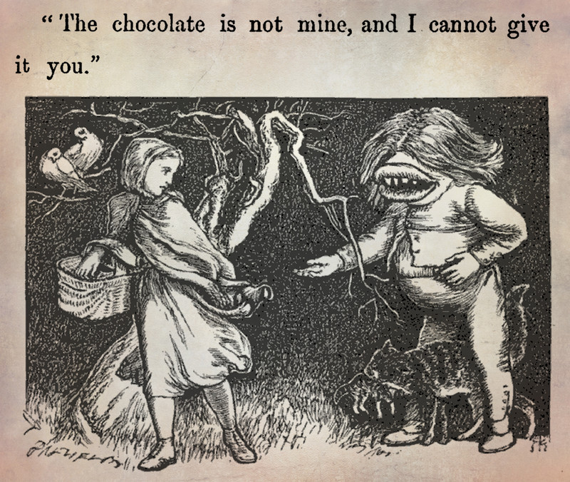 Reblog if you wouldn't give the chocolate to an ogre. From Speaking Likenesses by Christina Rossetti and illustrated by Arthur Hughes, 1874.