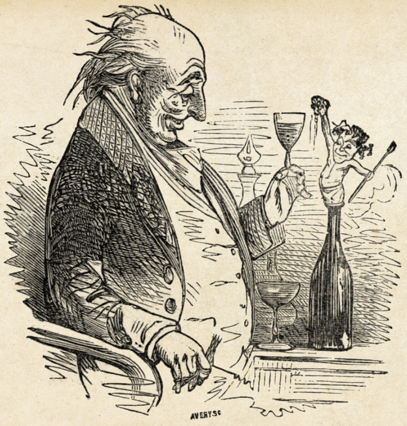 #vintage illustration #imp #spirit #drinking #alcohol #drunk #hallucination